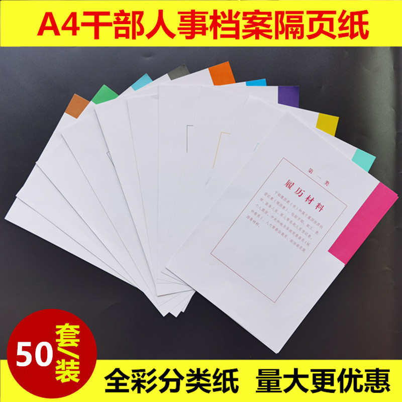 50套裝多字A4干部人事檔案十大類分類紙隔頁紙索引紙80克分頁紙