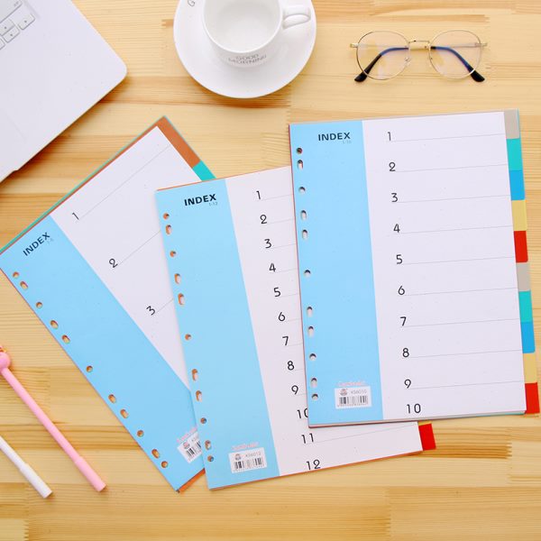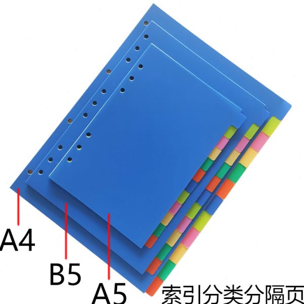 A4B5A5彩色塑料分隔頁12張活頁本索引分頁紙6孔磨砂分類卡可定制