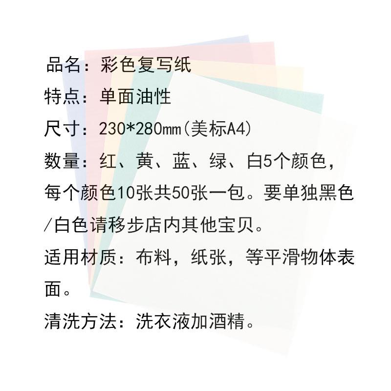 彩色復寫紙單面不臟手不染布用印花拷貝轉印紙紅綠藍黑色黃色可洗