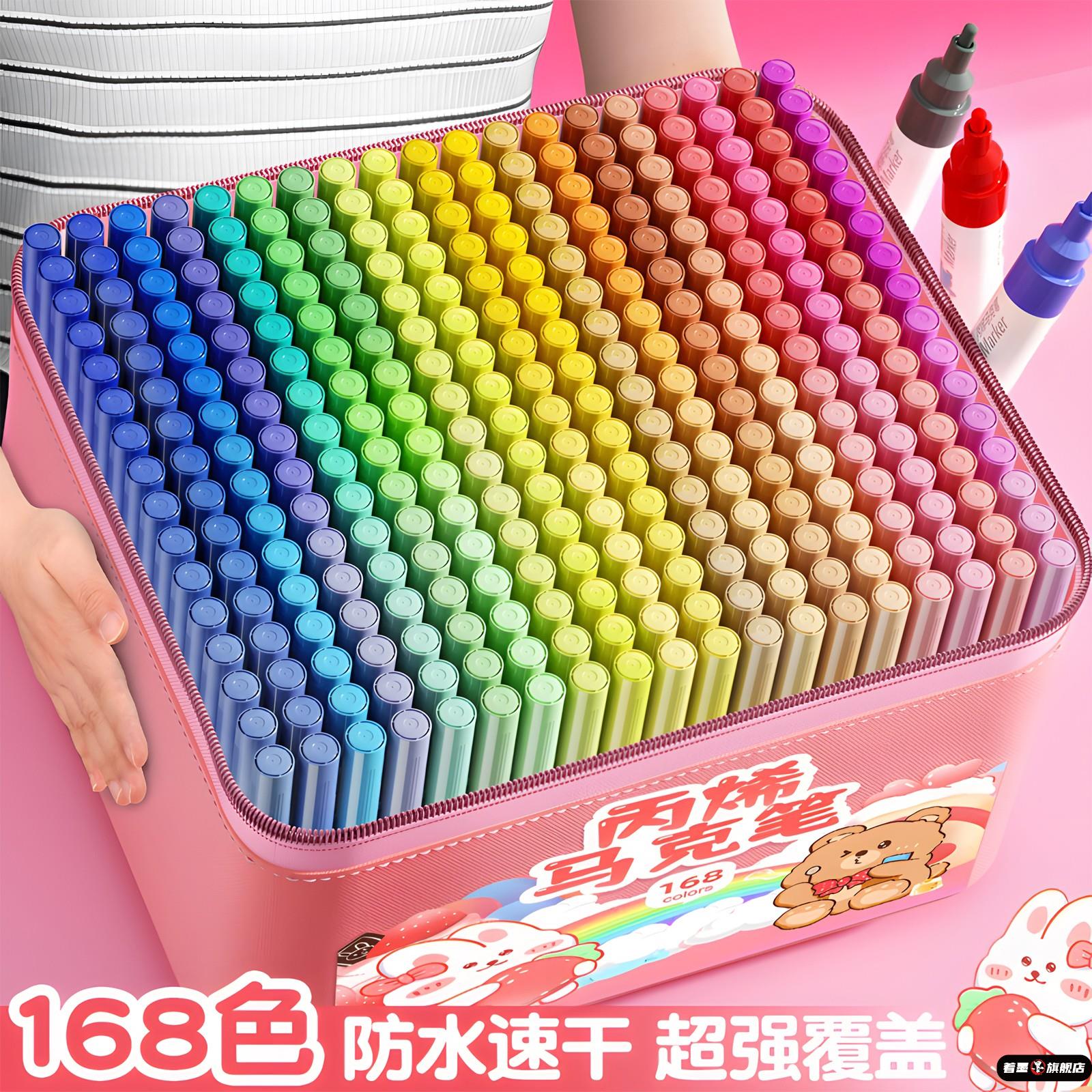 丙烯馬克筆軟頭小學生專用美術水彩筆120色繪畫彩筆彩色筆兒童畫筆筆芯高顏值炳烯水性可水洗24色36色