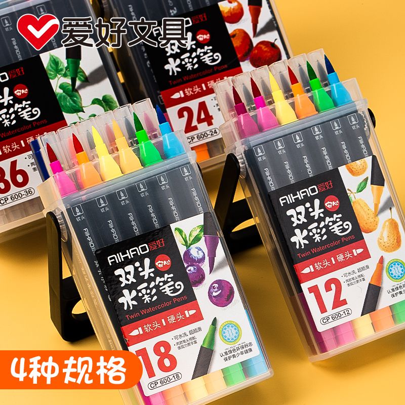 愛好雙頭水彩筆套裝CP600可水洗兒童幼兒園小學生專用美術繪畫筆