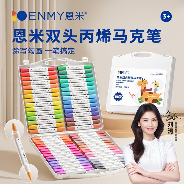 【順豐包郵】恩米小黑盒直液式丙烯馬克筆小學生專用兒童專業美術軟頭可洗可疊色不透色速干防水不掉色水彩筆
