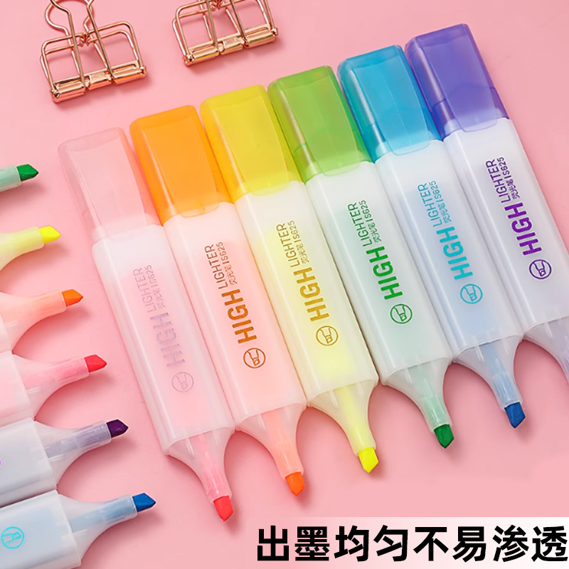 晨光熒光筆6色無味熒光標記筆學生用糖果色記號筆彩色粗劃重點背書神器兒童閃光瑩光銀光螢光筆記復習筆