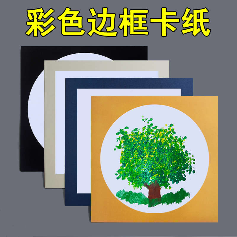 油畫棒卡紙帶邊框方形圓形馬克筆彩鉛繪畫鏡面彩色兒童裱畫框硬卡