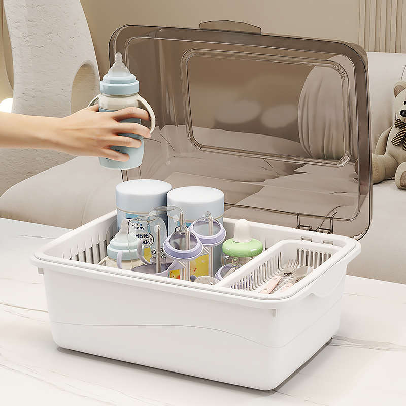嬰兒奶瓶收納箱干燥架便攜大號瀝水箱防塵帶蓋寶寶餐具翻蓋整理箱