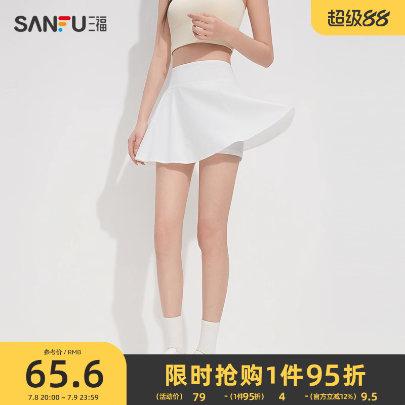 三福女夏季A字網球裙褲 防走光內襯時尚輕運動瑜伽褲498028