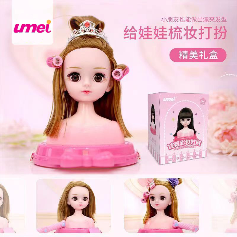 小公主半身發型仿真兒童帶化妝品頭飾可練習梳頭發扎辮子娃娃玩具