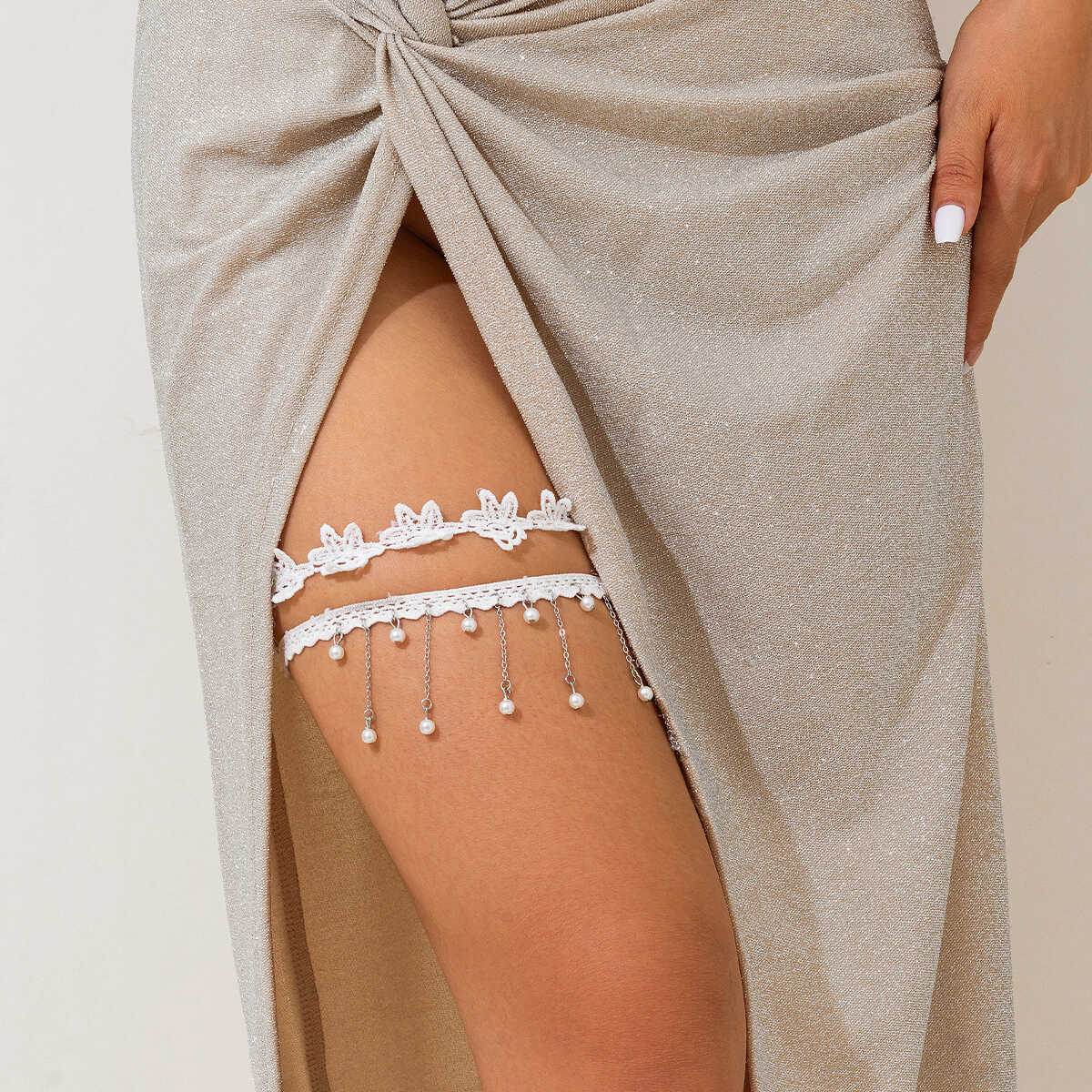 甜美蕾絲鏈仿珍珠米珠腿鏈套裝歐美夏季海邊旅行度假辣妹潮流飾品