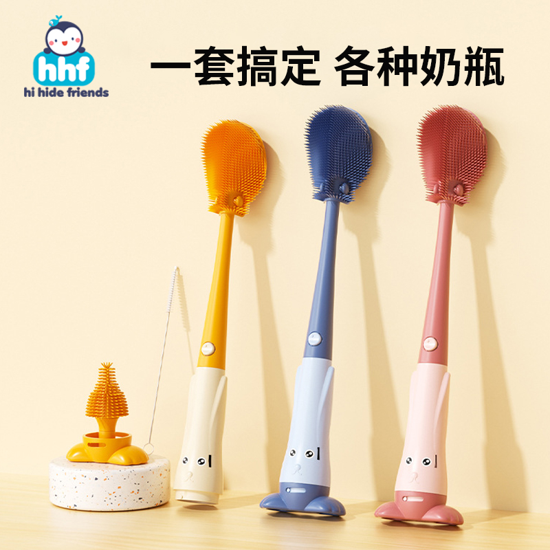奶瓶刷新生嬰兒專用洗奶嘴硅膠清潔刷套裝吸管刷子神器卡通奶瓶刷