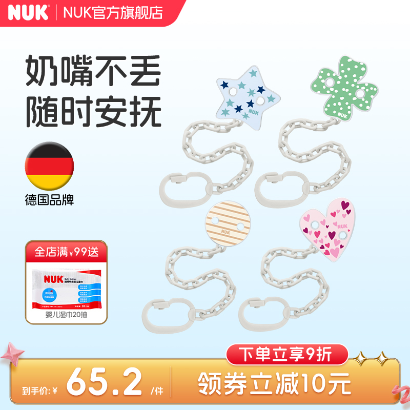 NUK德國進口安撫奶嘴防掉鏈嬰兒牙膠掛繩寶寶奶嘴夾防丟繩固定器