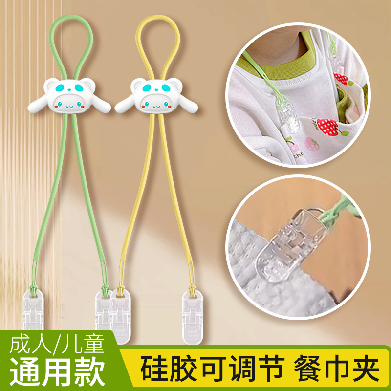 干飯夾子防濺兒童口水巾圍兜夾餐紙巾夾成人掛脖可調節夾圍嘴手帕