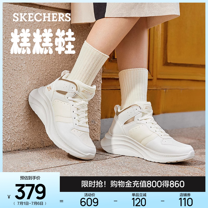 Skechers斯凱奇糕糕鞋女鞋秋季增高休閑鞋厚底中高幫鞋百搭小白鞋