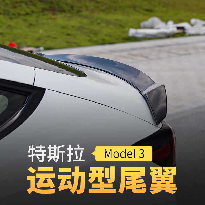 適用于特斯拉modely3煥新尾翼碳纖維紋高性能P版黑色包圍改裝配件