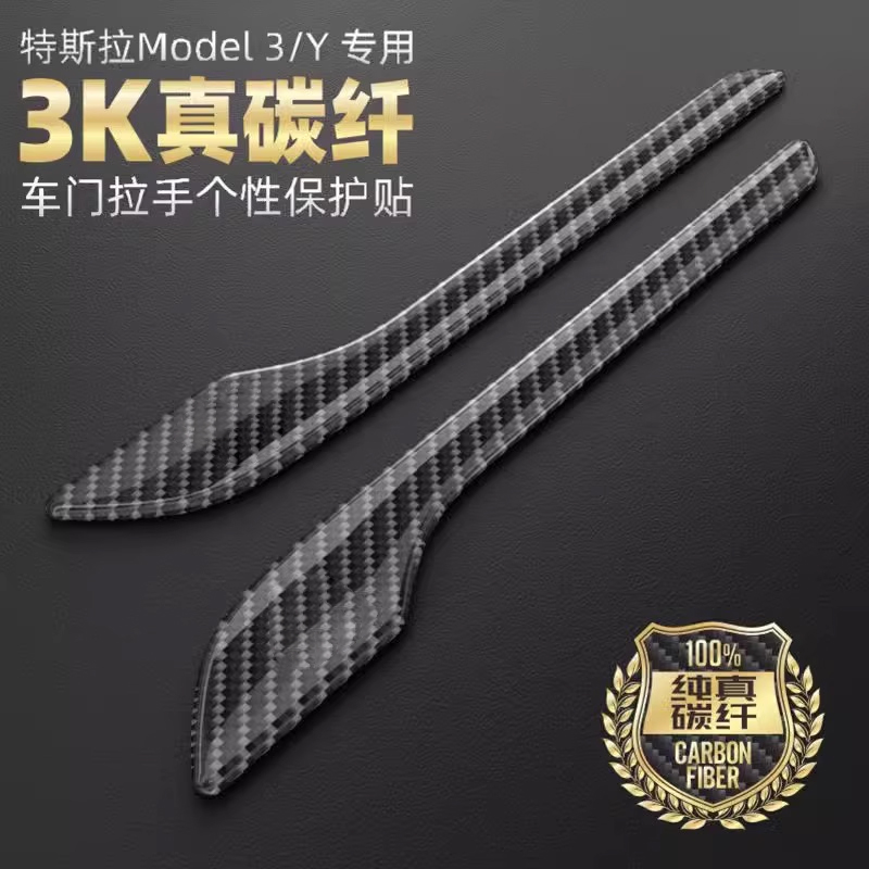 真碳纖維特斯拉門把手貼片保護套y換新版model3夜光車內裝飾改裝