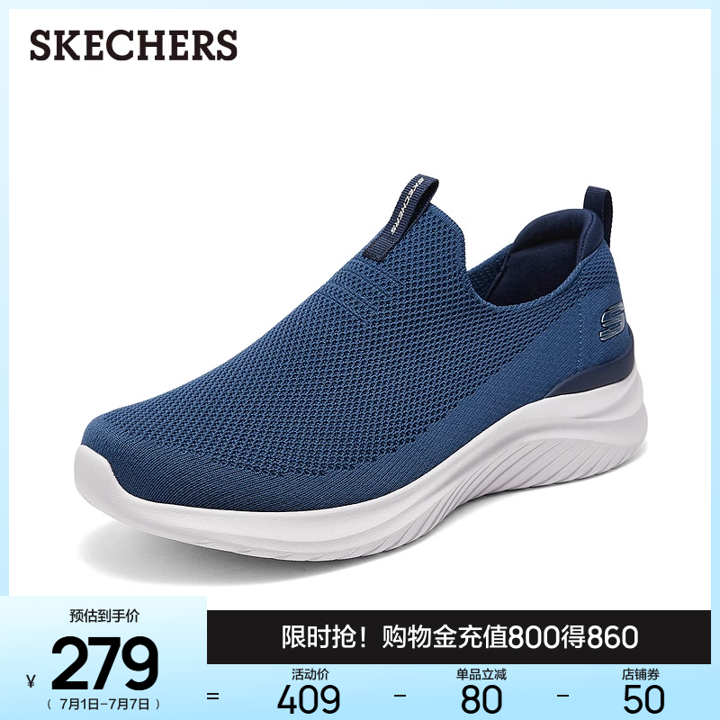斯凱奇2025夏季新款男透氣網面一腳蹬健步鞋爸爸鞋厚底休閑運動鞋