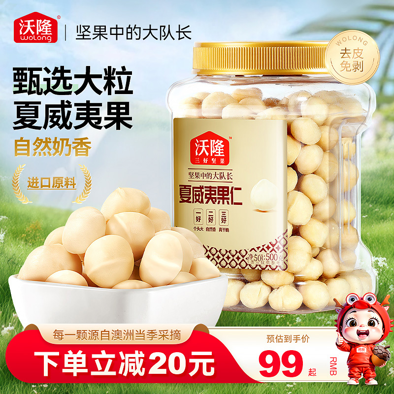 沃隆澳洲夏威夷果仁即食原味炒貨堅果干果孕婦休閑堅果零食500g
