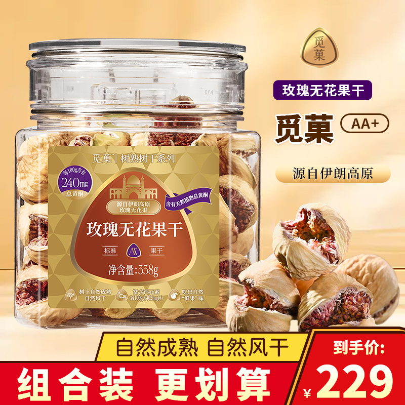 覓菓AA+玫瑰無花果干大顆粒原味即食天然黃體酮零食小吃罐裝338g