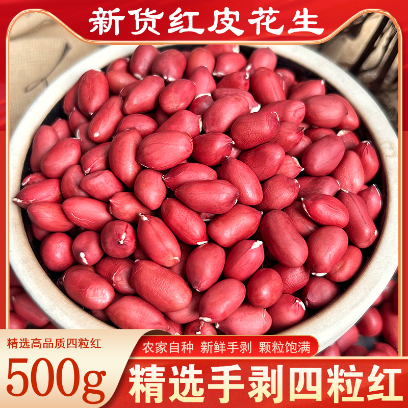 紅皮生花生米2024年新貨新鮮原味不帶殼曬干四粒紅衣仁小粒豆商用