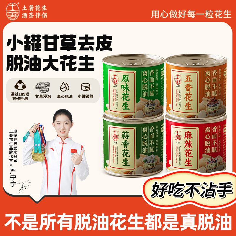 甘源脫油花生椒鹽味零食小吃休閑食品麻辣味小包裝花生米熟下酒菜