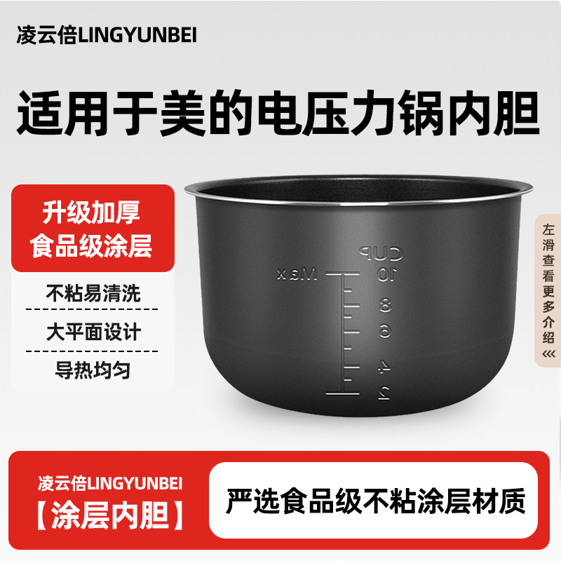 凌云倍內膽適用于美的電壓力鍋4L/5L/6L升內鍋不粘鍋加厚通用配件