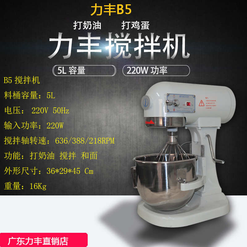 力豐B5打蛋機 商用攪拌機5L電動鮮奶機 多功能和面機 奶油打發機