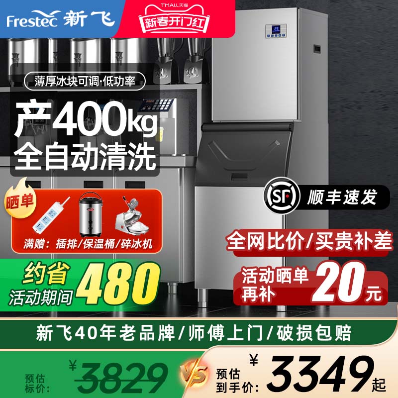 新飛水冷制冰機商用餐飲火鍋店分體機全自動風冷冰塊制作造冰機