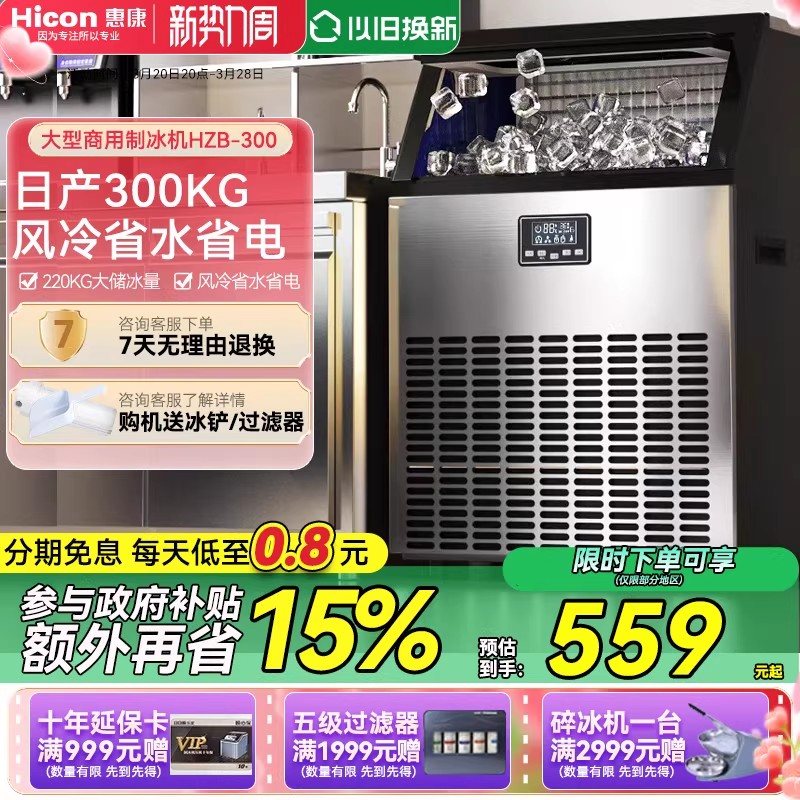 惠康制冰機商用奶茶店大型250磅300公斤大容量全自動方冰塊制作機