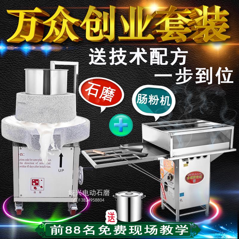 電動石磨機商用石磨+三木光華新款蒸汽發生器腸粉機擺攤蒸爐全套