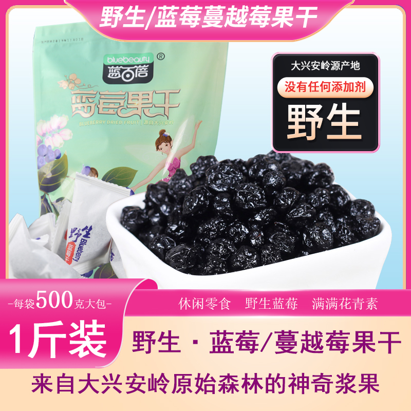 野生藍莓果干蔓越莓干無添加劑孕婦零食大興安嶺特產藍莓干500g*1