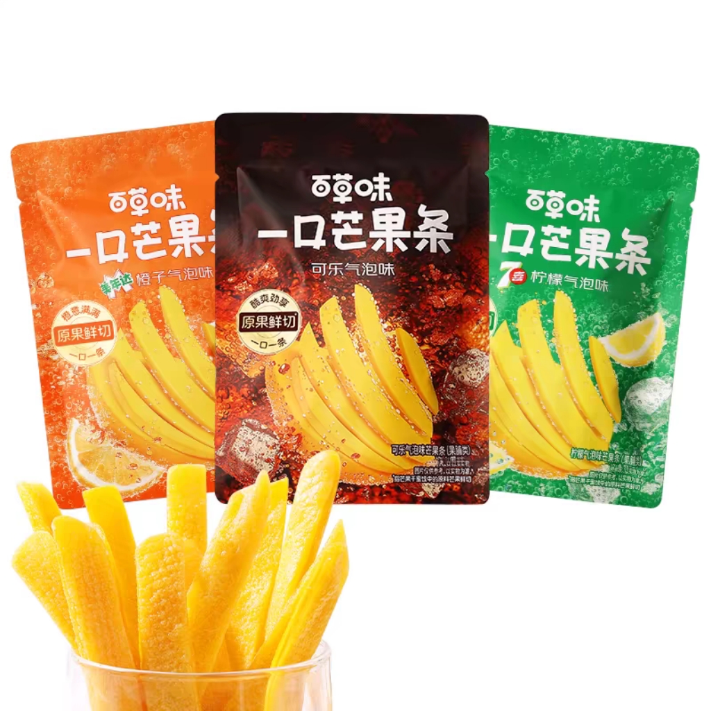 百草味一口芒果條80g橙子可樂檸檬氣泡味芒果干果干果脯休閑零食