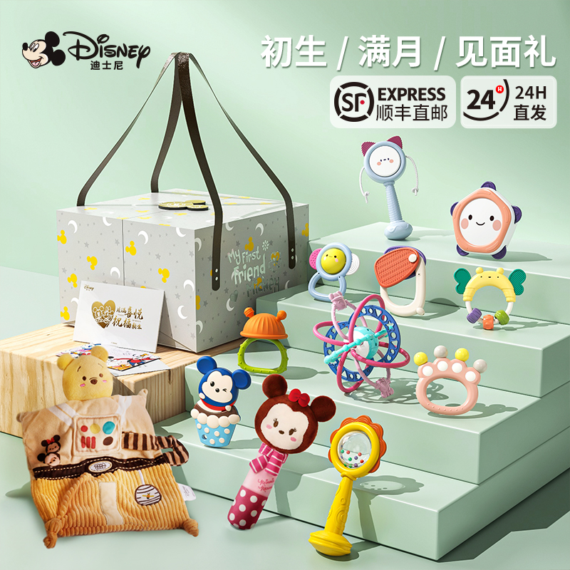 迪士尼嬰兒寶寶搖鈴3個月剛出生男女新生兒禮盒周歲禮0—1歲送禮