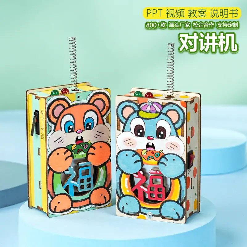 科技小制作兒童對講機木制手工diy科學發明實驗steam無線傳呼教具
