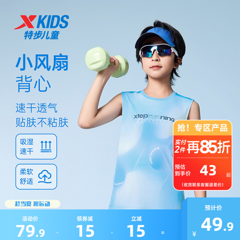 氫風|特步童裝兒童速干跑步背心2025夏季新款男童無袖短T大童夏裝