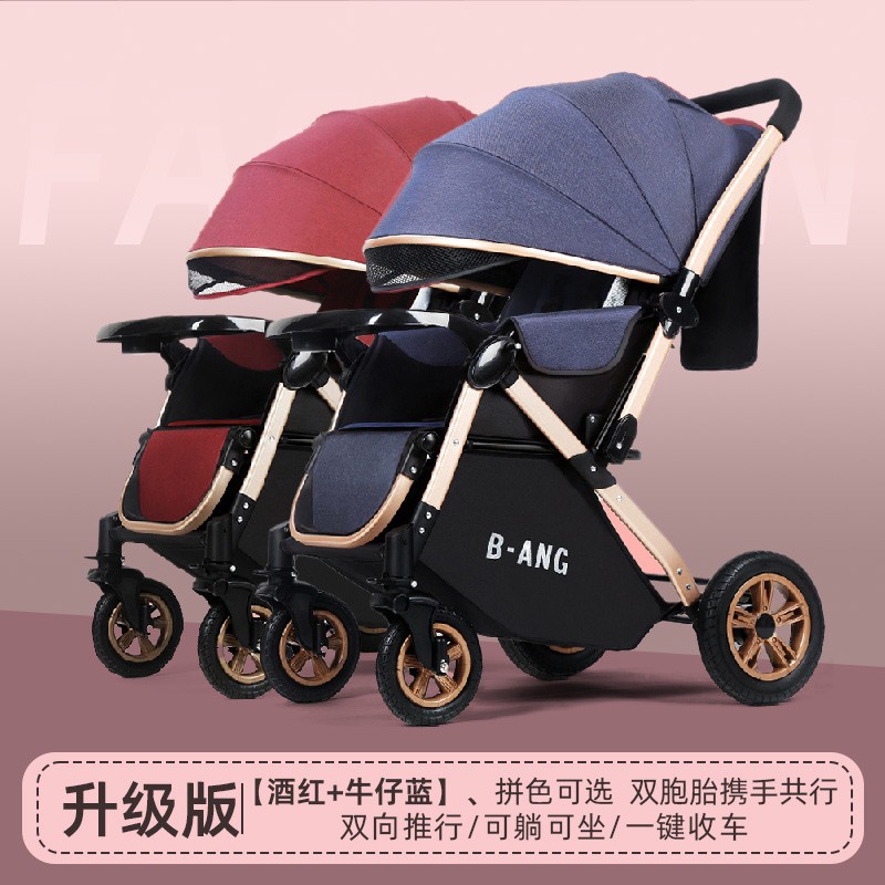 雙胞胎嬰兒推車輕便高景觀便攜可坐躺拆分倆娃嬰兒車可折疊通用