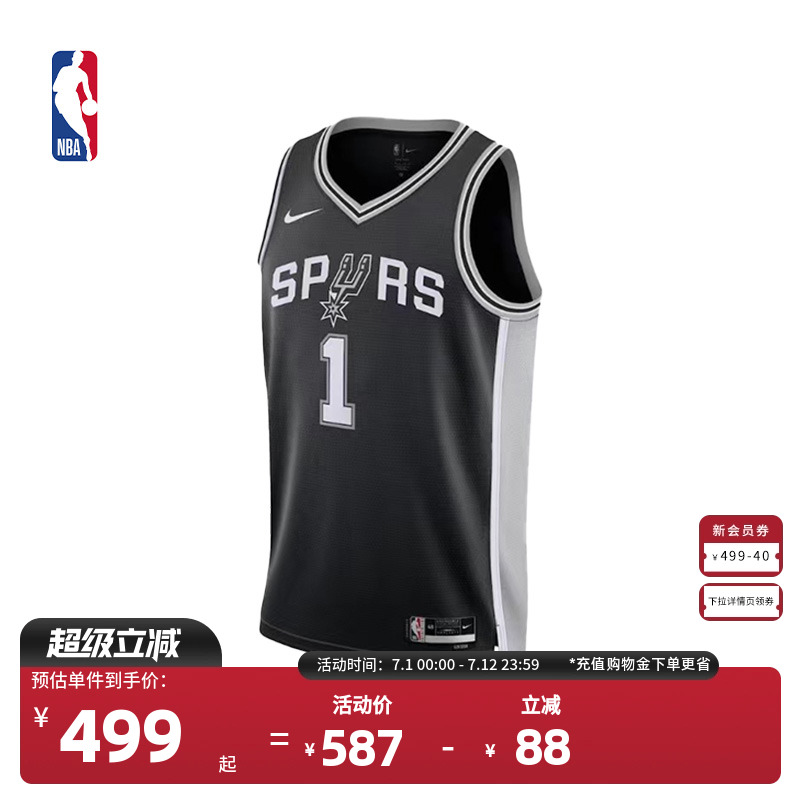 Nike籃球服NBA男子馬刺隊文班亞馬運動速干透氣球衣籃球服
