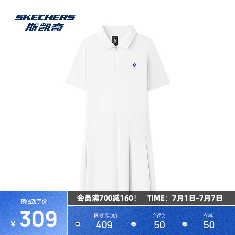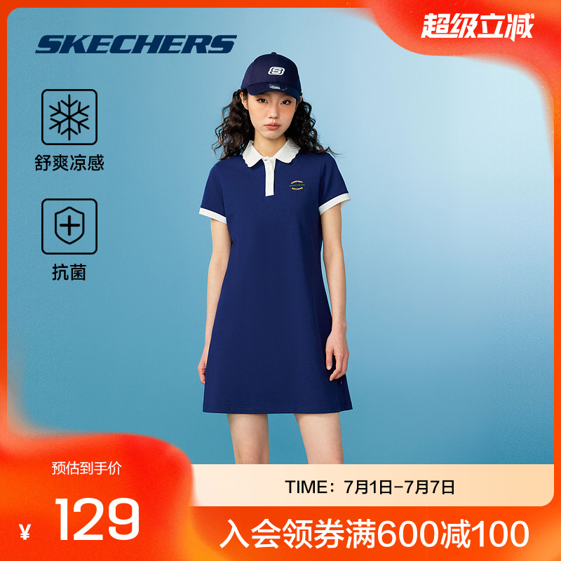 斯凱奇官方outlets2025女子Polo領短袖休閑運動連衣裙涼感舒適
