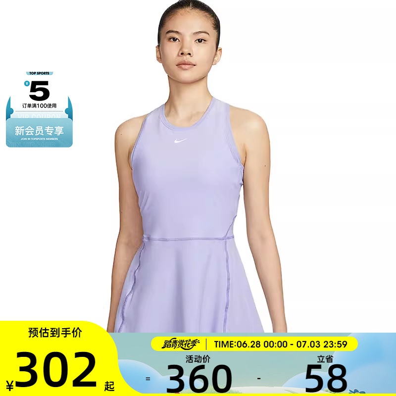 Nike耐克女子網球連衣裙舒適透氣簡約速干運動休閑無袖連衣裙換季
