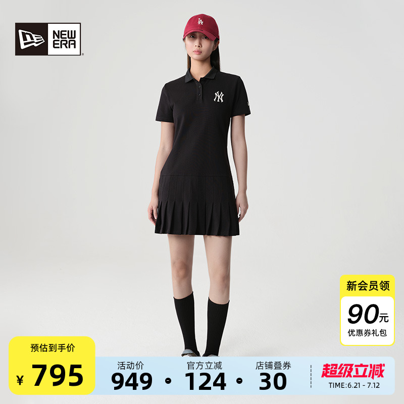 New Era紐亦華夏季新款MLB短袖連衣裙POLO領百褶裙子運動網球風NY