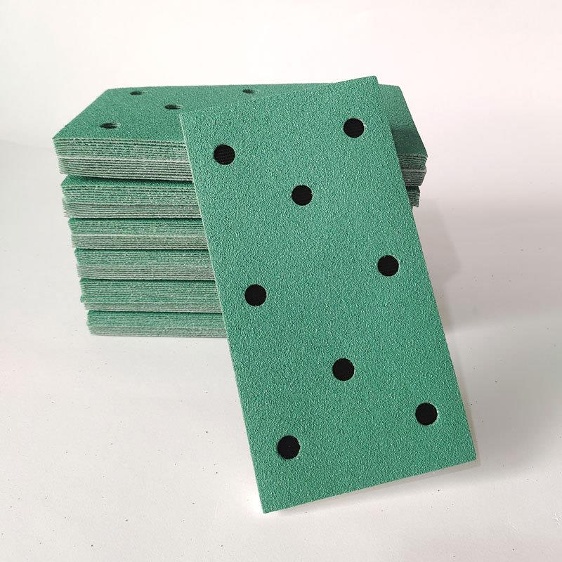 適用費斯托長方形砂紙綠色打磨汽車原子灰膩子3+2+3沙紙8孔100張