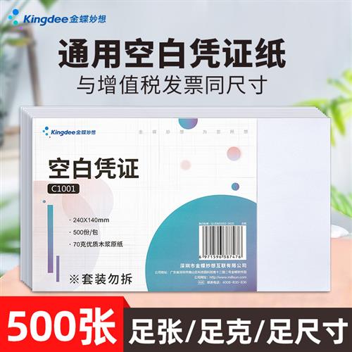 金蝶增票空白憑證紙240-140mm通用空白紙會計憑證紙210*148.5mm財