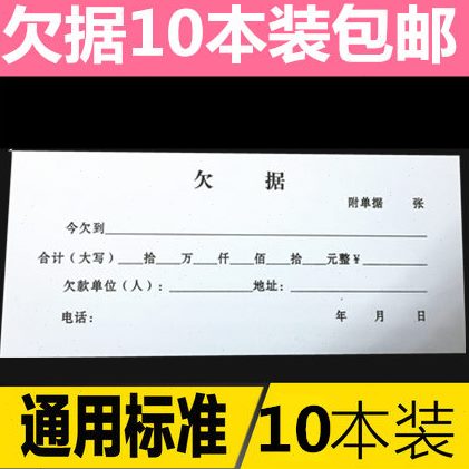 10本裝包郵欠據 欠款單 19*8.5欠款單 欠據憑證 收據 借據欠條