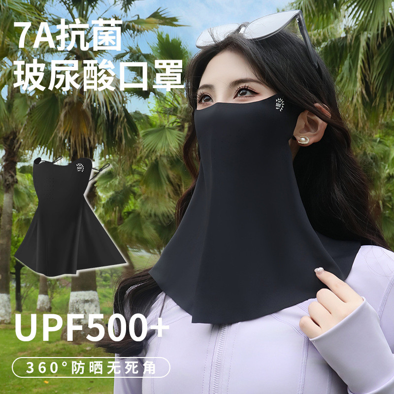 夏季護頸半遮面玻尿酸冰絲防曬口罩透氣UPF500防紫外線防曬面罩女