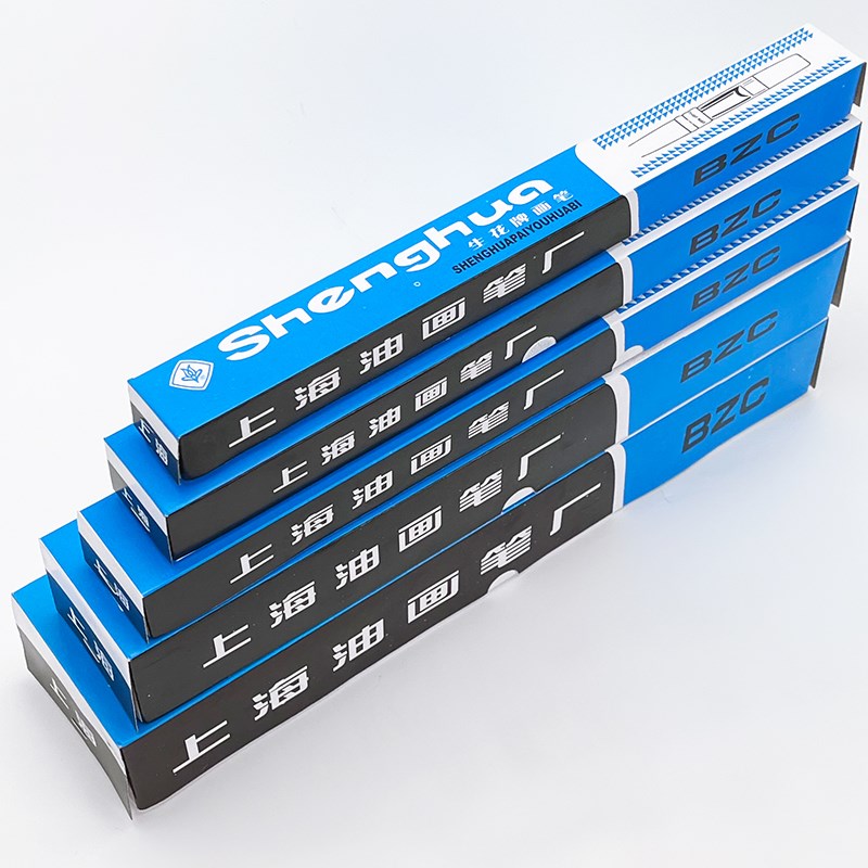 進口韓國華虹豬鬃油畫筆扁圓頭舌形丙烯筆水粉筆實木桿硬質筆808