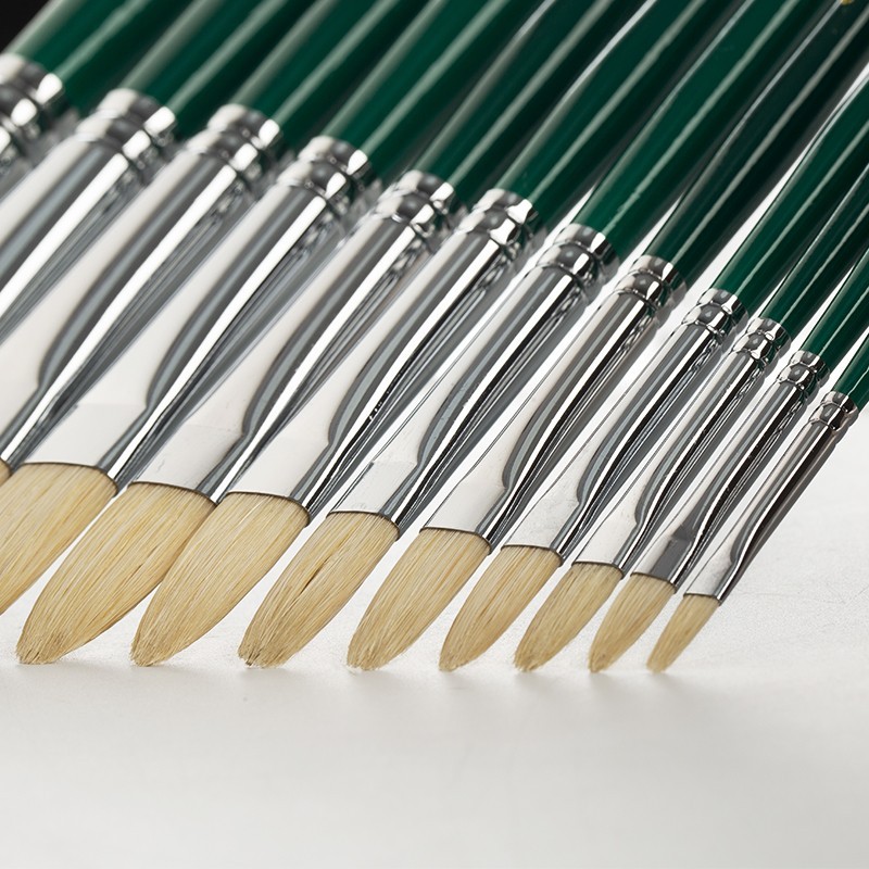現貨速發白桿豬鬃油畫筆水粉水彩筆丙烯畫筆工業毛筆12號補油描線