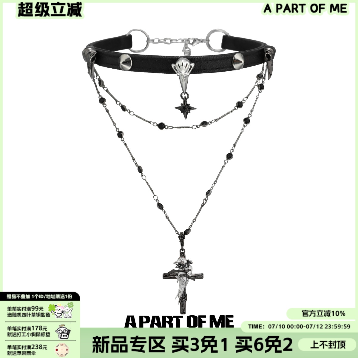 渡鴉系列原創小眾設計皮項圈疊帶高級雙層十字架項鏈烏鴉chocker