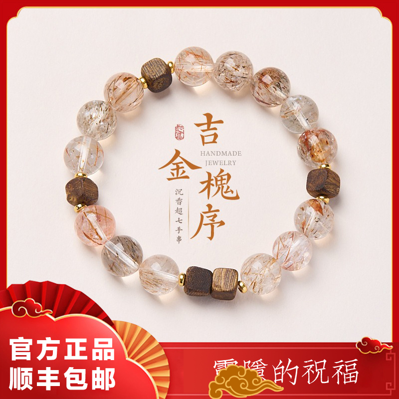 【杭州靈隱官方】天然超七水晶吉金槐序沉香虎眼石手鏈女祉念手串