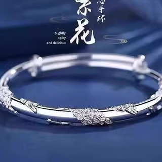 順欽銀樓S9999純銀手鐲女年輕款竹節銀手環足銀鐲子生日禮物百搭