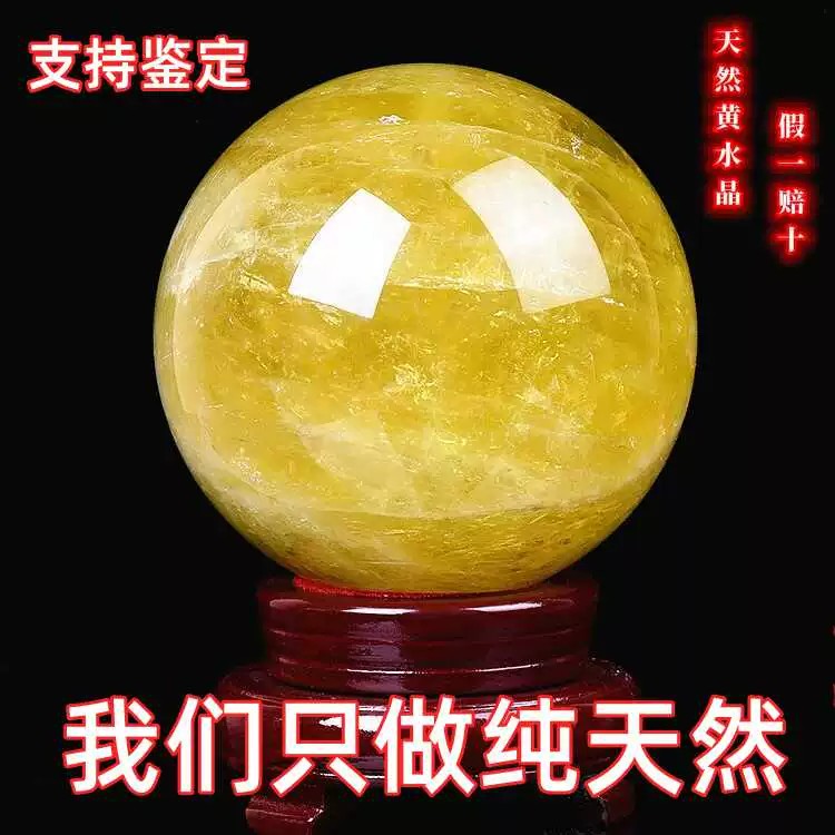 天然黃色水晶球擺件官方旗艦店真原石手工打磨開業喬遷高端送禮品