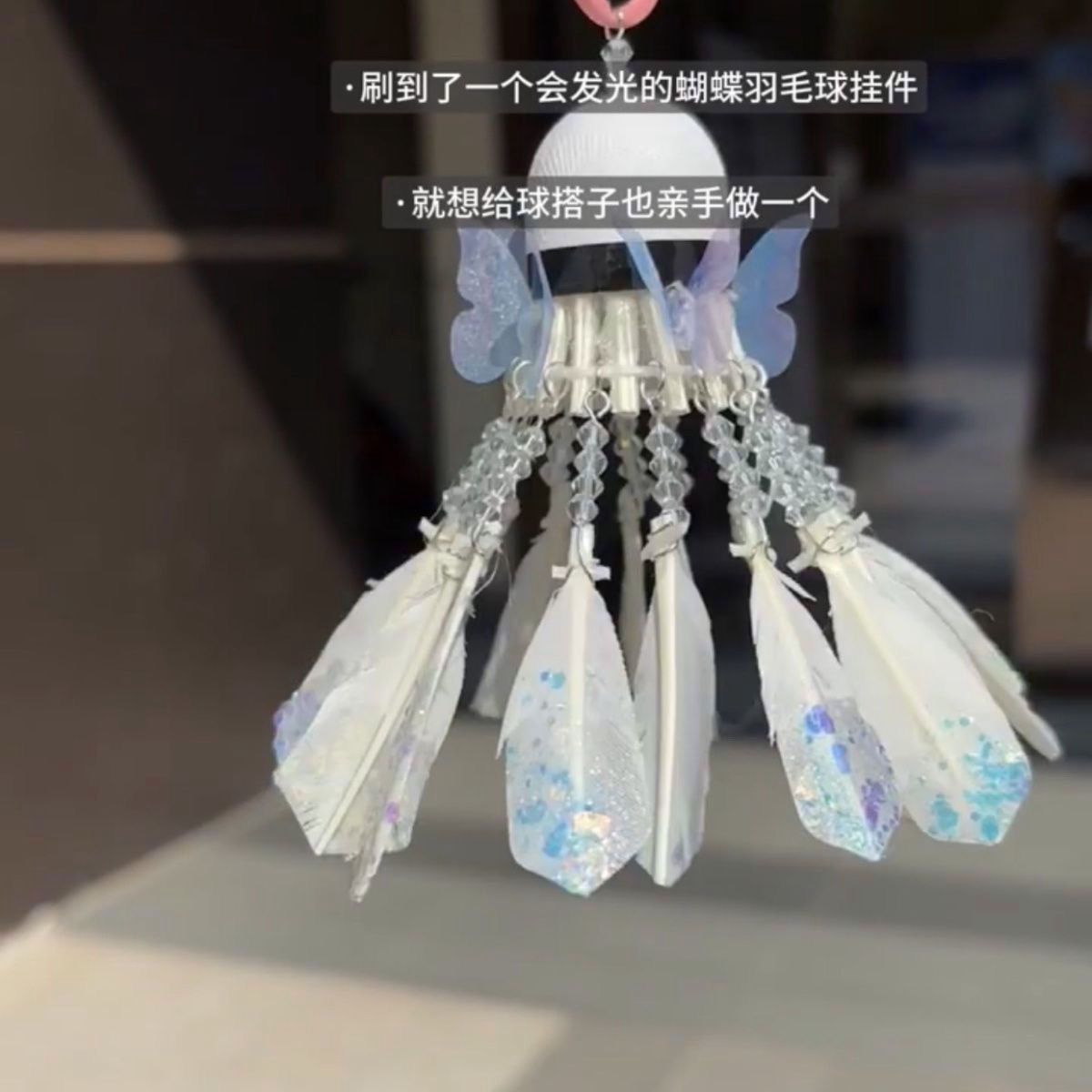 diy手工夢幻蝴蝶羽毛球掛件材料包鑰匙扣送朋友閨蜜情侶創意禮物