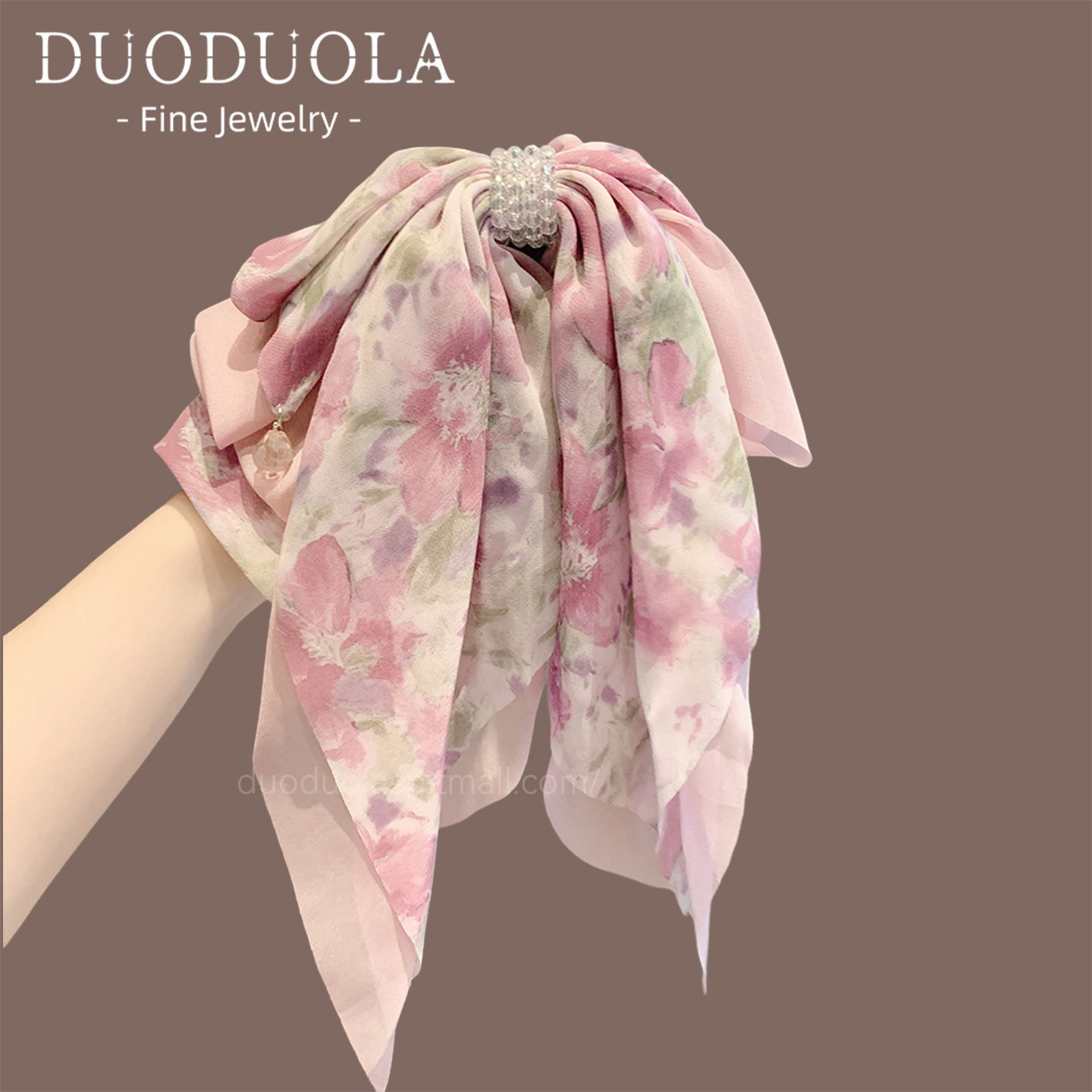2025新款粉色碎花抓夾多層蝴蝶結水晶流蘇馬尾夾氣質后腦勺發抓